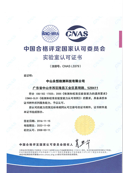 永恒檢測嚴(yán)格按照ISO/IEC 17025建立實(shí)驗(yàn)室管理體系,獲得CMA(國家認(rèn)證認(rèn)可監(jiān)督管理委員會)認(rèn)證及CNAS(中國合格評定國家認(rèn)可委員會)認(rèn)可,所出具的檢測報(bào)告具有法律效力和國際公信力。